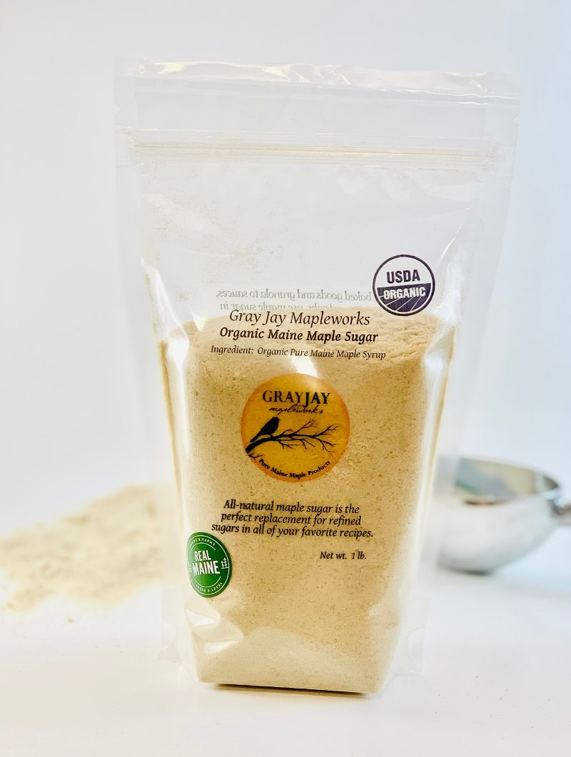 Organic Pure Maine Maple Sugar is made by further boiling down our Organic Pure Maine Maple Syrup then stirring until granulations form. After allowing to cool, the sugar is sifted and then packaged for your enjoyment.